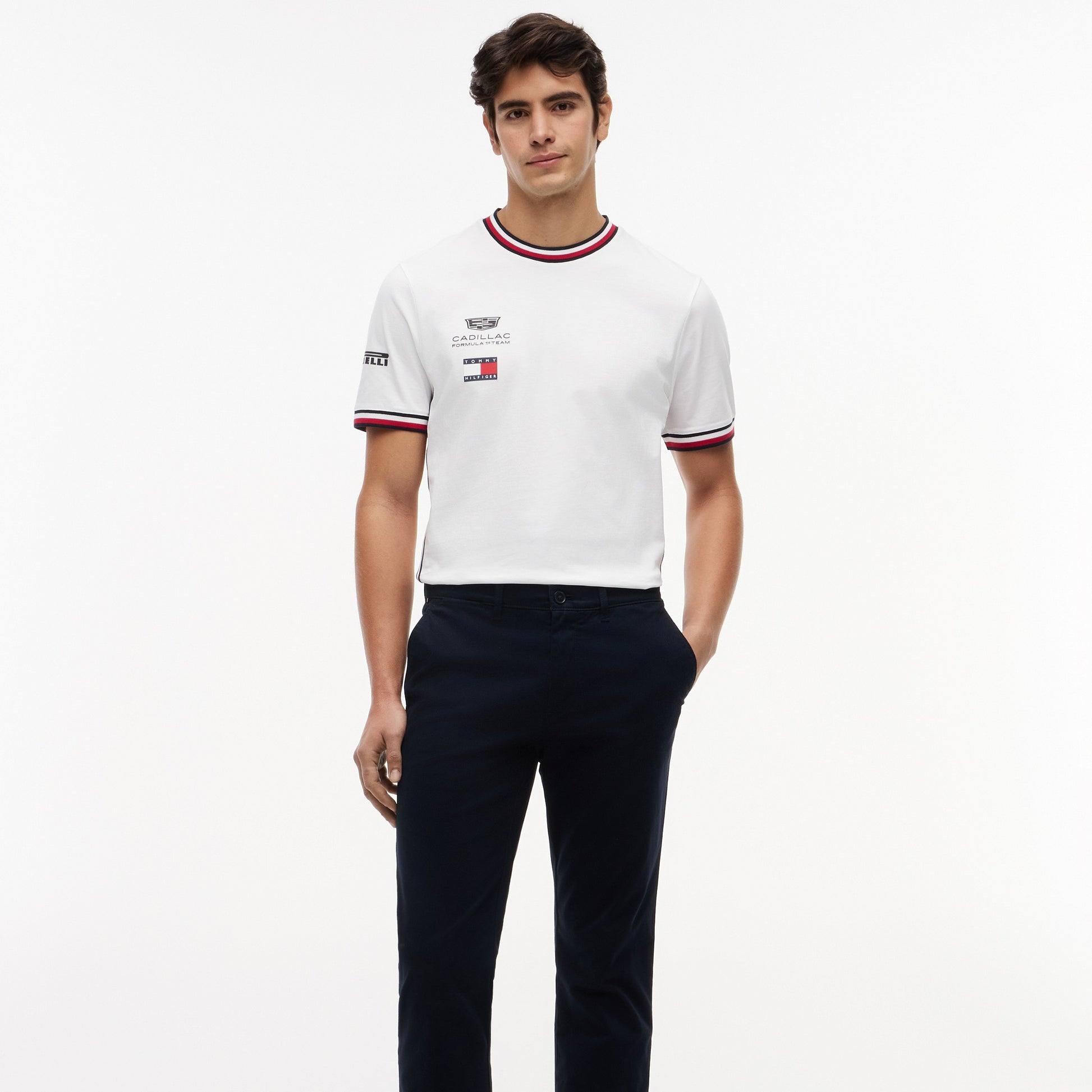 Show your support for the Cadillac F1 Team 2026 with the Cadillac F1 Team 2026 x Tommy Hilfiger Tee for Men in classic white. Part of the official fanwear collection from the newly announced multi-year partnership between Tommy Hilfiger x Cadillac Formula 1 Team — blending iconic fashion with high-speed American motorsport heritage.