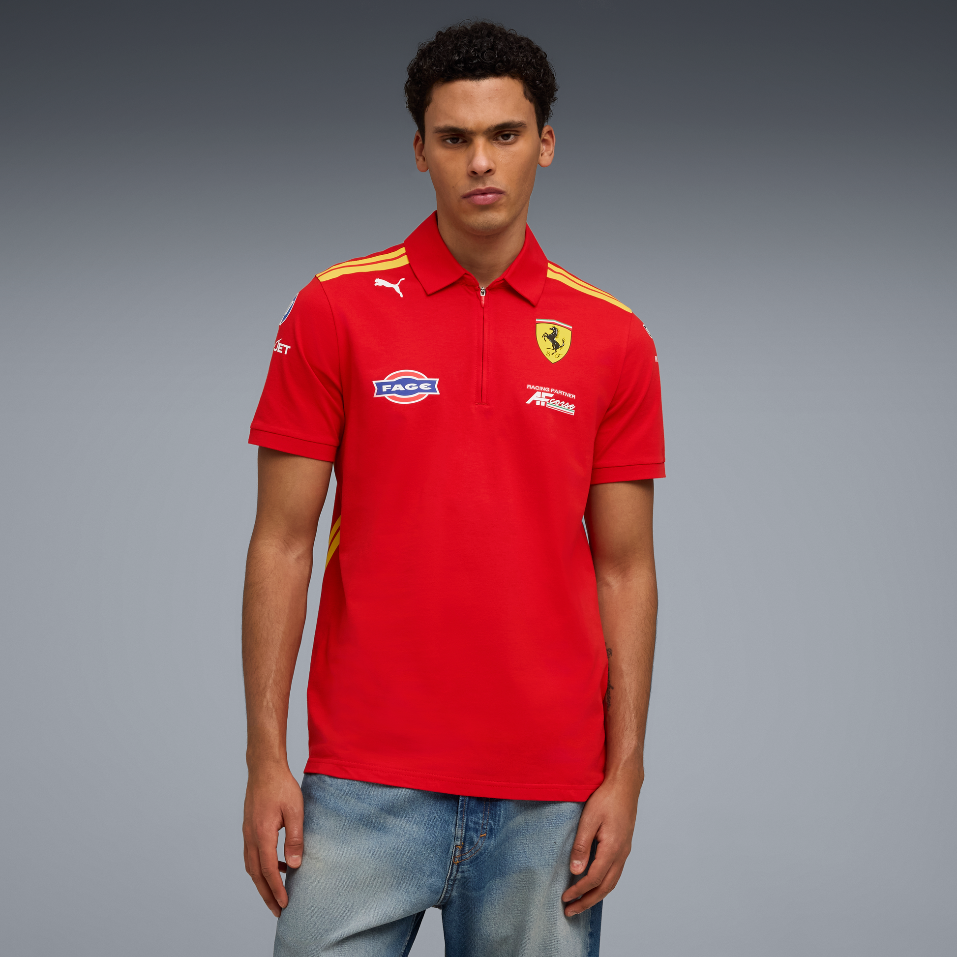 Support the team in style with the Scuderia Ferrari F1 Team 2026 Hypercar Polo for men in red. This official team polo features a classic collar, breathable fabric, and bold Scuderia Ferrari F1 branding, perfect for race days, casual wear, or motorsport-inspired everyday style.