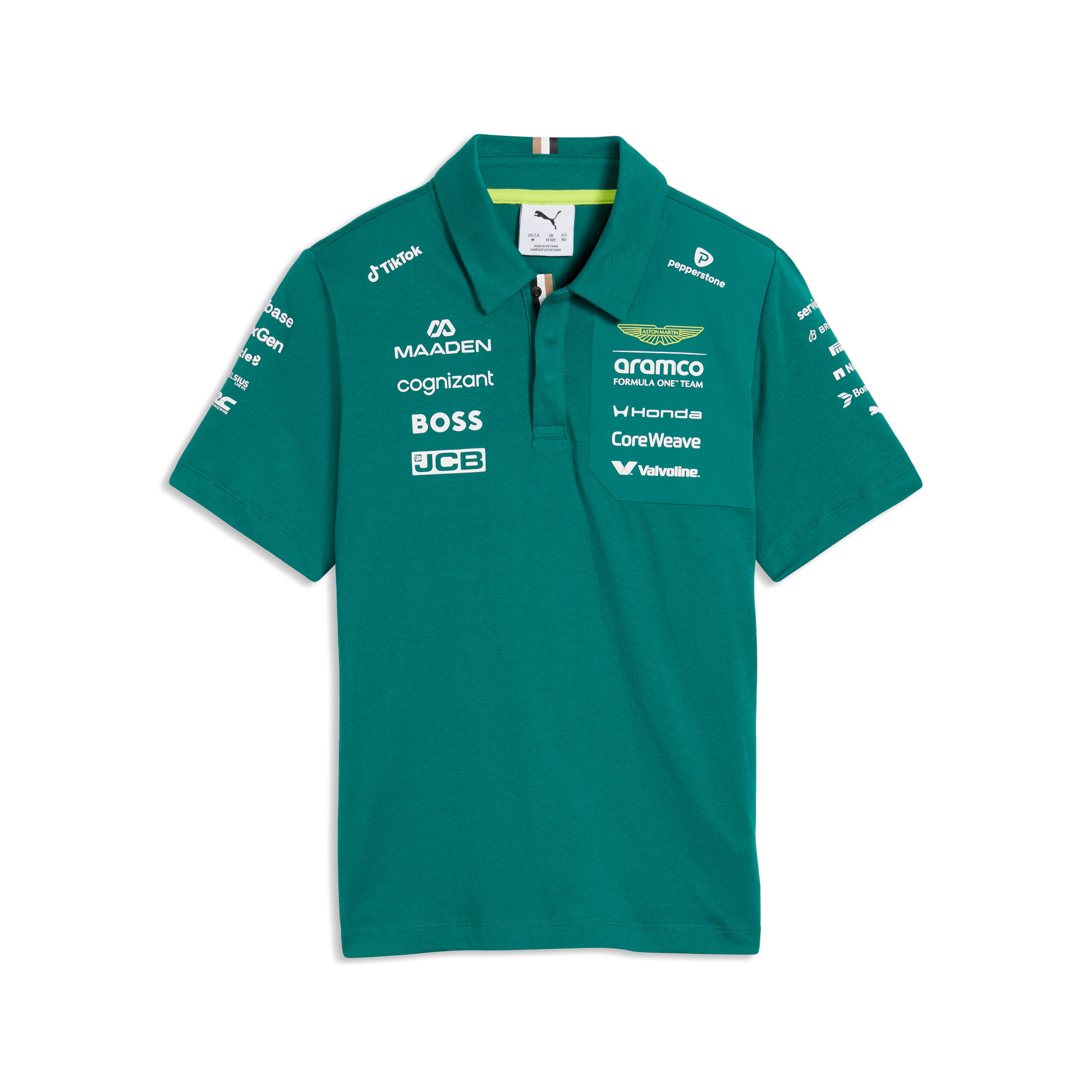 Support the Aston Martin Aramco Formula One® Team in style with the official Aston Martin F1 Team 2026 Polo for Kids. Finished in the signature Green Lux colour, this polo features authentic team branding inspired by the 2026 season, delivering a smart and sporty look for young fans.