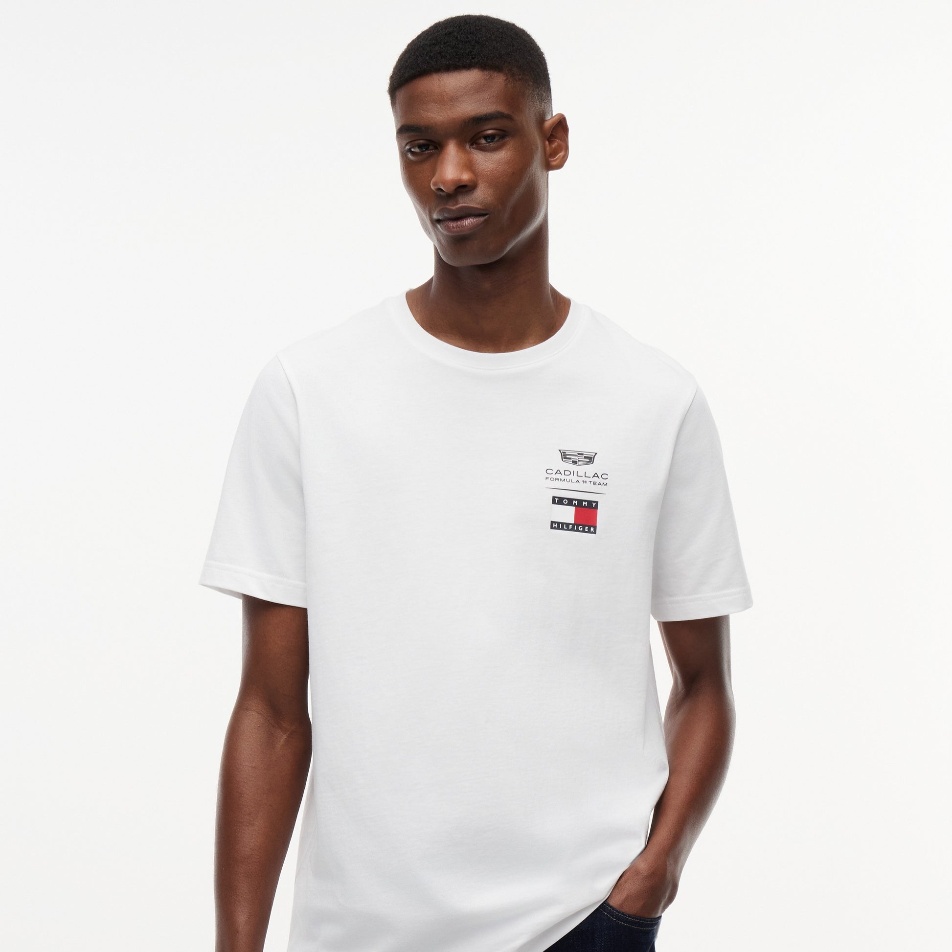 Show your racing pride with the Cadillac F1 x Tommy Hilfiger Logo Tee for Men in classic white. This premium men’s T‑shirt pairs bold Tommy Hilfiger x Cadillac Formula 1 Team branding with timeless casual style.