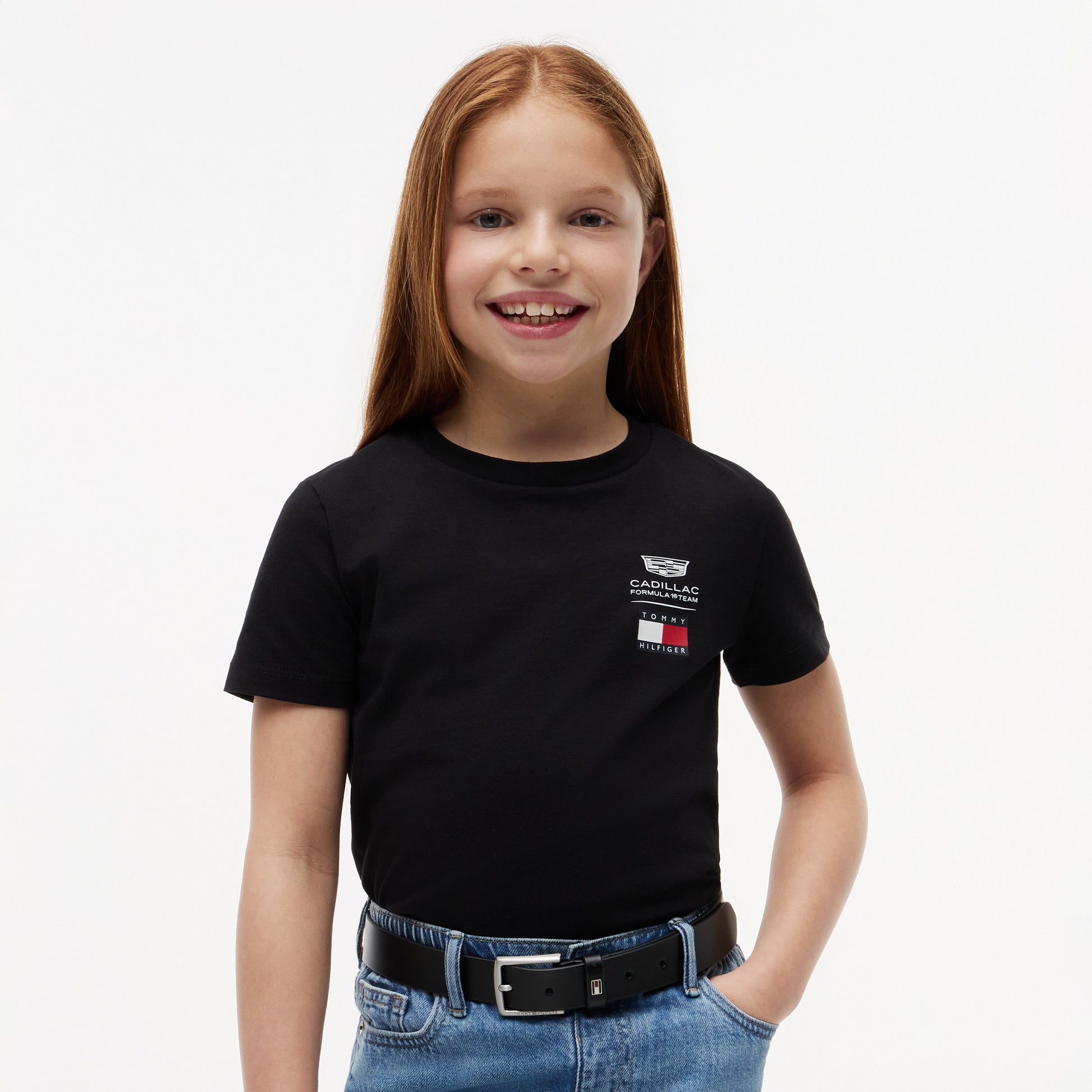 Get young fans race‑ready with the Cadillac F1 x Tommy Hilfiger T‑Shirt for Kids in classic black. This premium kids’ tee combines bold American motorsport‑inspired graphics with authentic Tommy Hilfiger x Cadillac Formula 1 Team branding for standout casual style.