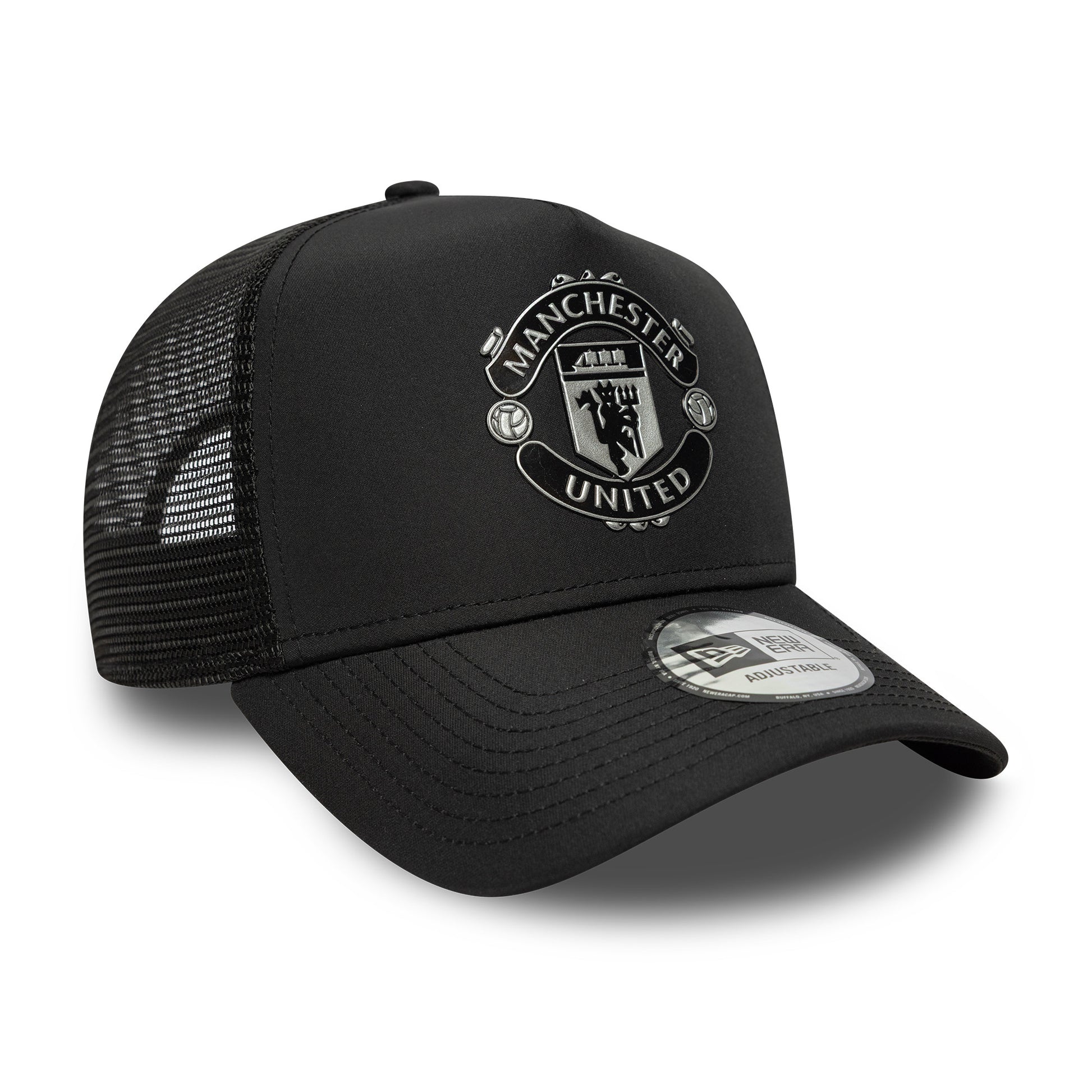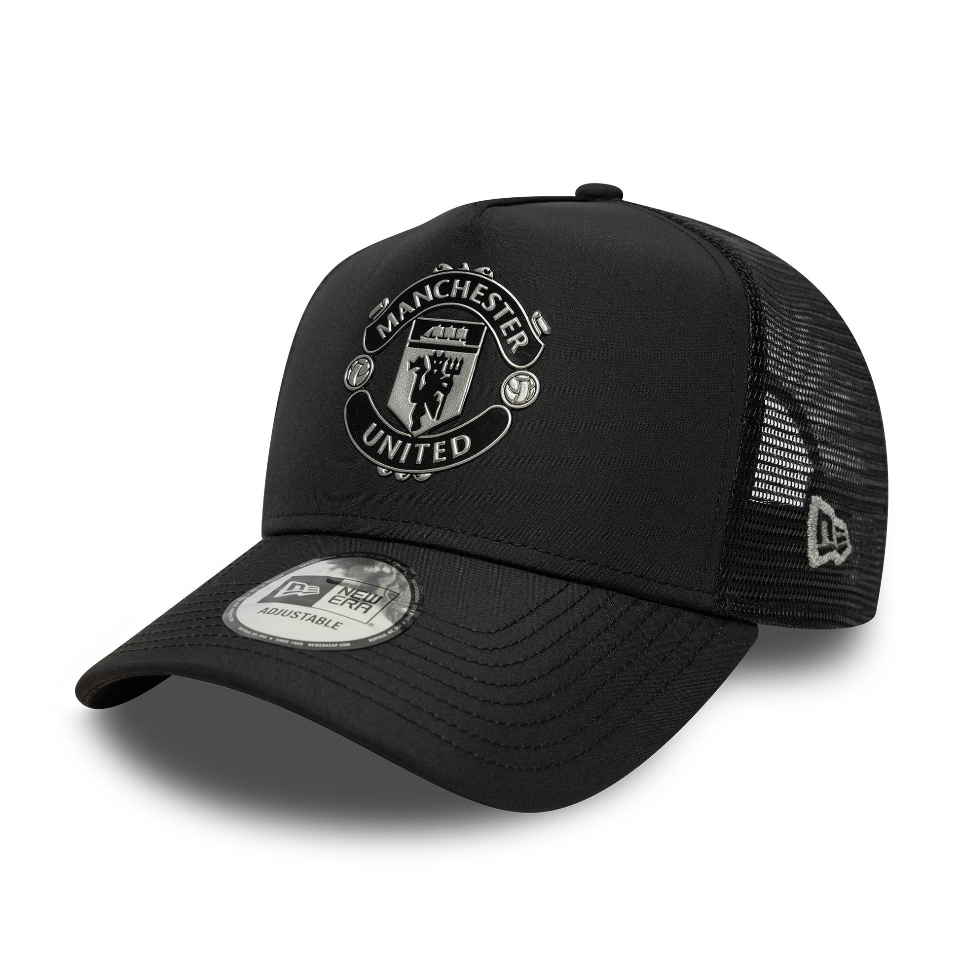 The Manchester United Reflective Trucker Cap Adults – Black is a stylish piece of football‑inspired headwear with a modern twist. Featuring a sleek black colourway and official Manchester United branding — often with eye‑catching contrasting or reflective detailing — this trucker cap blends fan appeal with contemporary style.