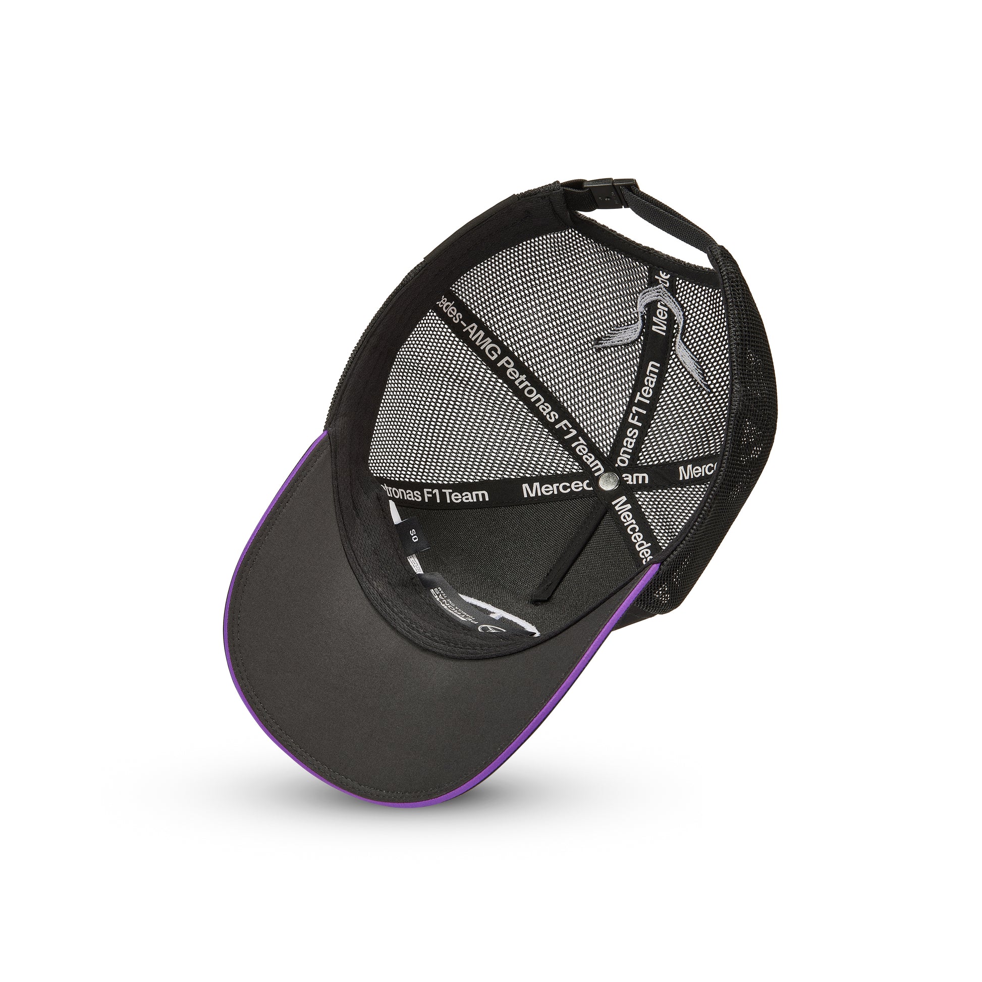 Mercedes AMG Petronas Formula 1 Team Lewis Hamilton Trucker Cap. Team and partner logos with trucker mesh. Keep a cool head when things get hot! Available in White, Black and Purple