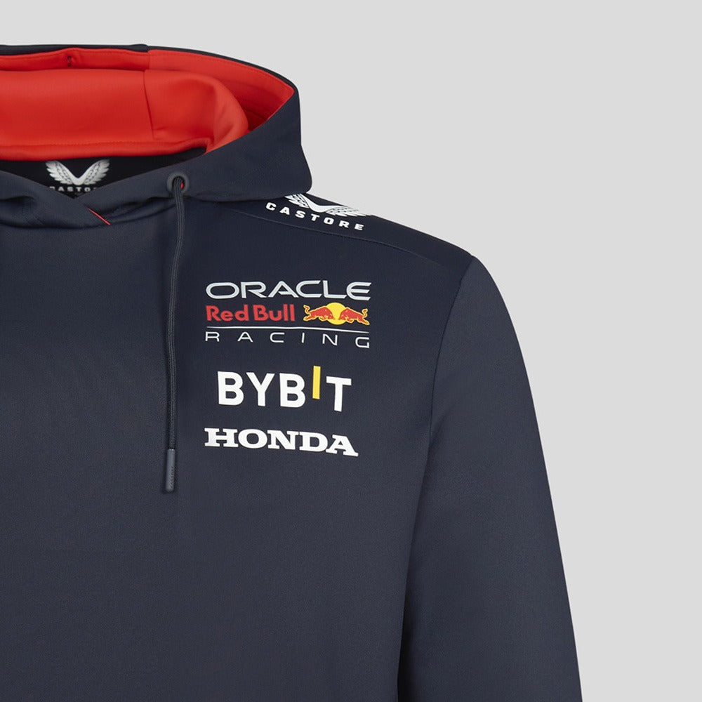 Official Oracle Red Bull Racing Pullover Hoodie. With team and partner logos. As worn by the Oracle Red Bull Racing Team during the 2023 Formula 1 season