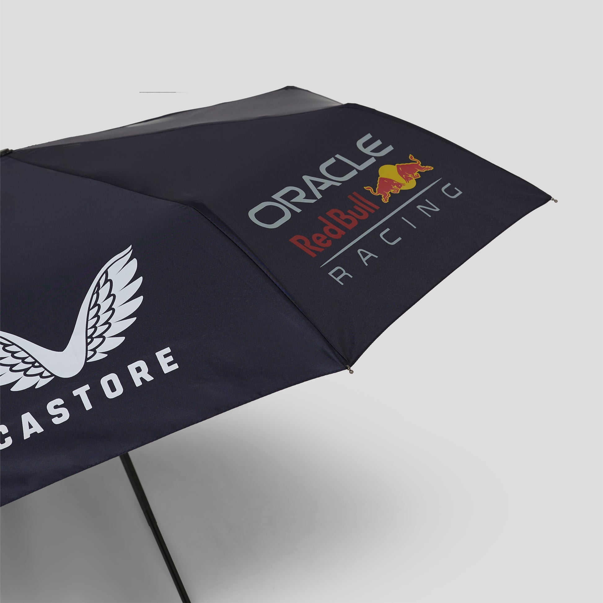Stay dry on race day this Formula 1 season. This Oracle Red Bull Racing F1 short umbrella in night sky features ORBR team logo.