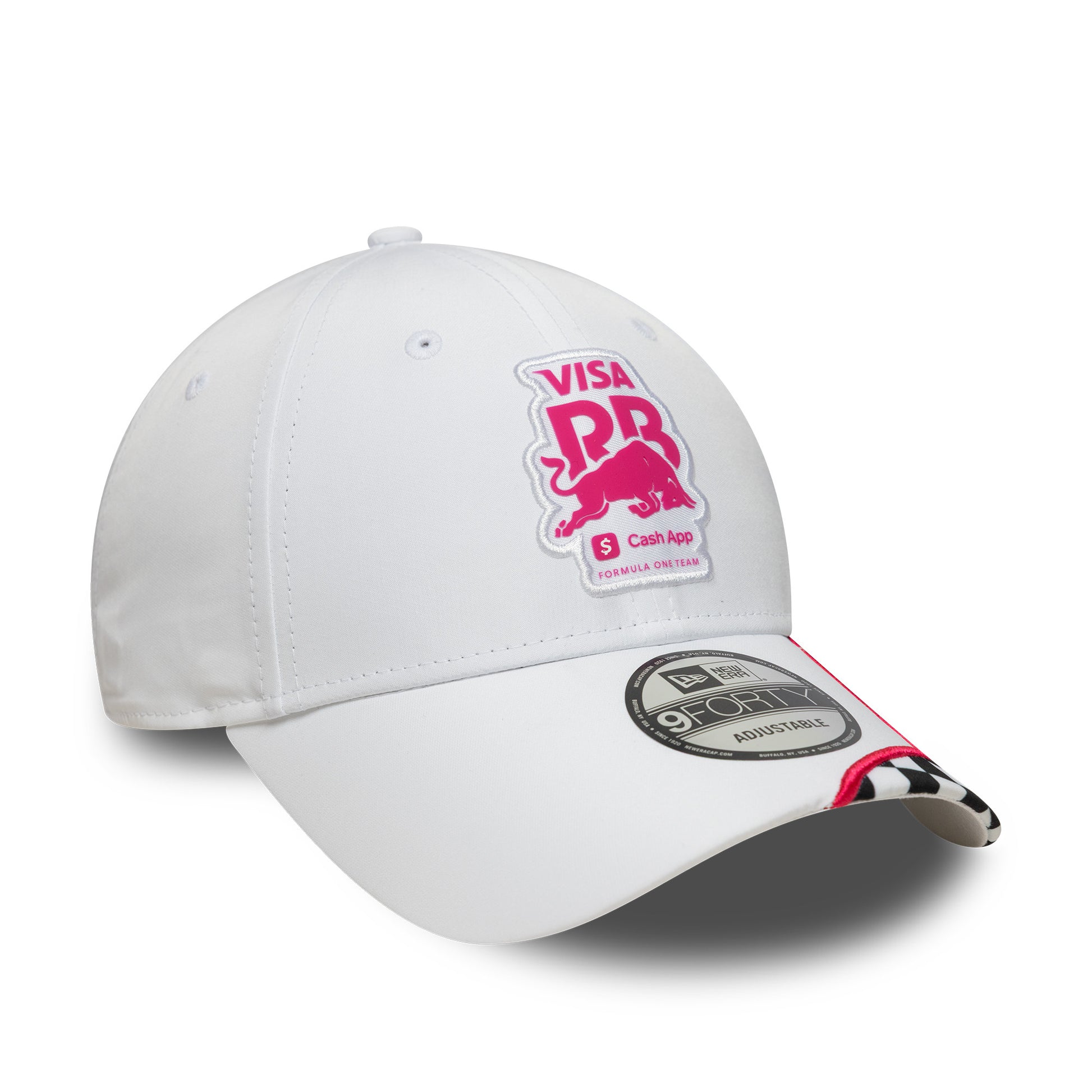 The Visa Cash App RB F1 Checkerboard 9Forty Cap – White combines bold style with a striking checkerboard design.